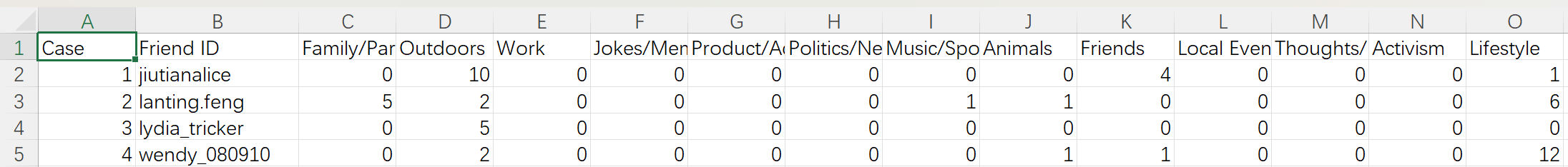 This week I learned how to input, output, and process data. The data was from my Ins account. According to the categories, it was clear that my friends, who are the same age as me, always output contents of Outdoors and Lifestyles. The table could show how data process clearly.
