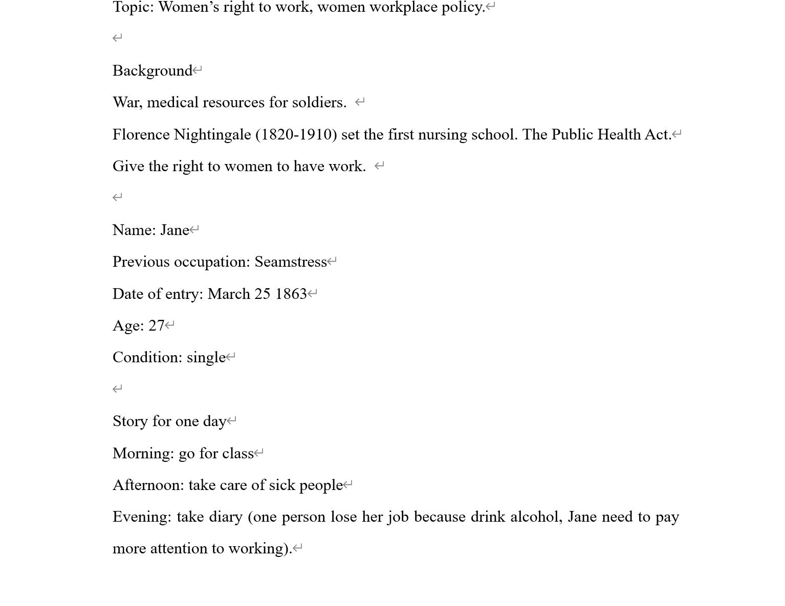 This week I collected data and wrote a story based on what we have seen in Week 14. We chose the data about women and right to work, especially about the nurse school. We generated the topic, background, and the plot. According to the pictures, the contents are about today's workshop.