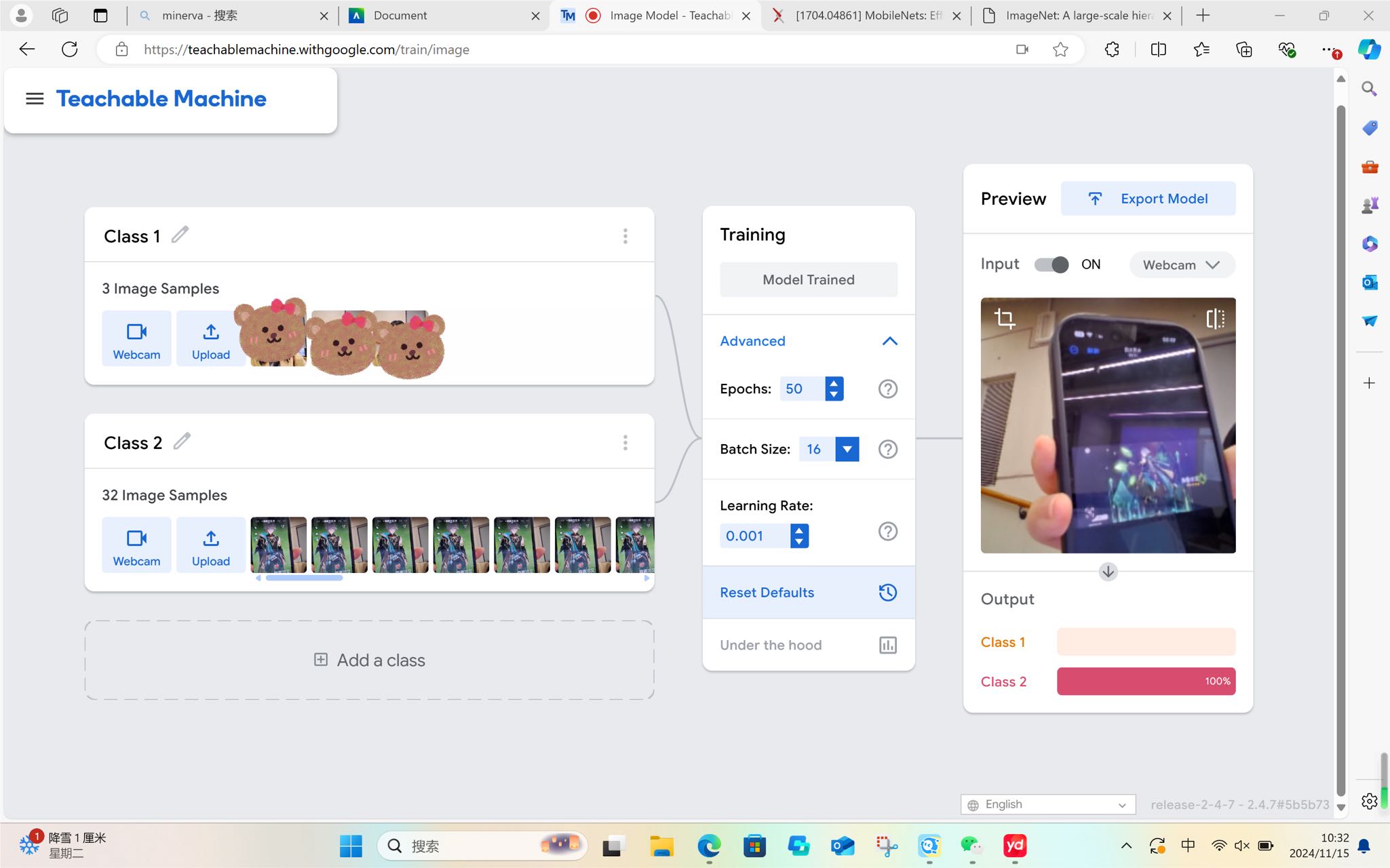 This week I tried Machine Learning. The plateform I used was Teachable Machine. It can identify images, audios, and pose. It was surpriesed me that it could identify one of my favorite ACG characters, Alhaitham. I only uploaded some vague pictures of him. When I showed my phone with his video on camera, the module could easily identify him.